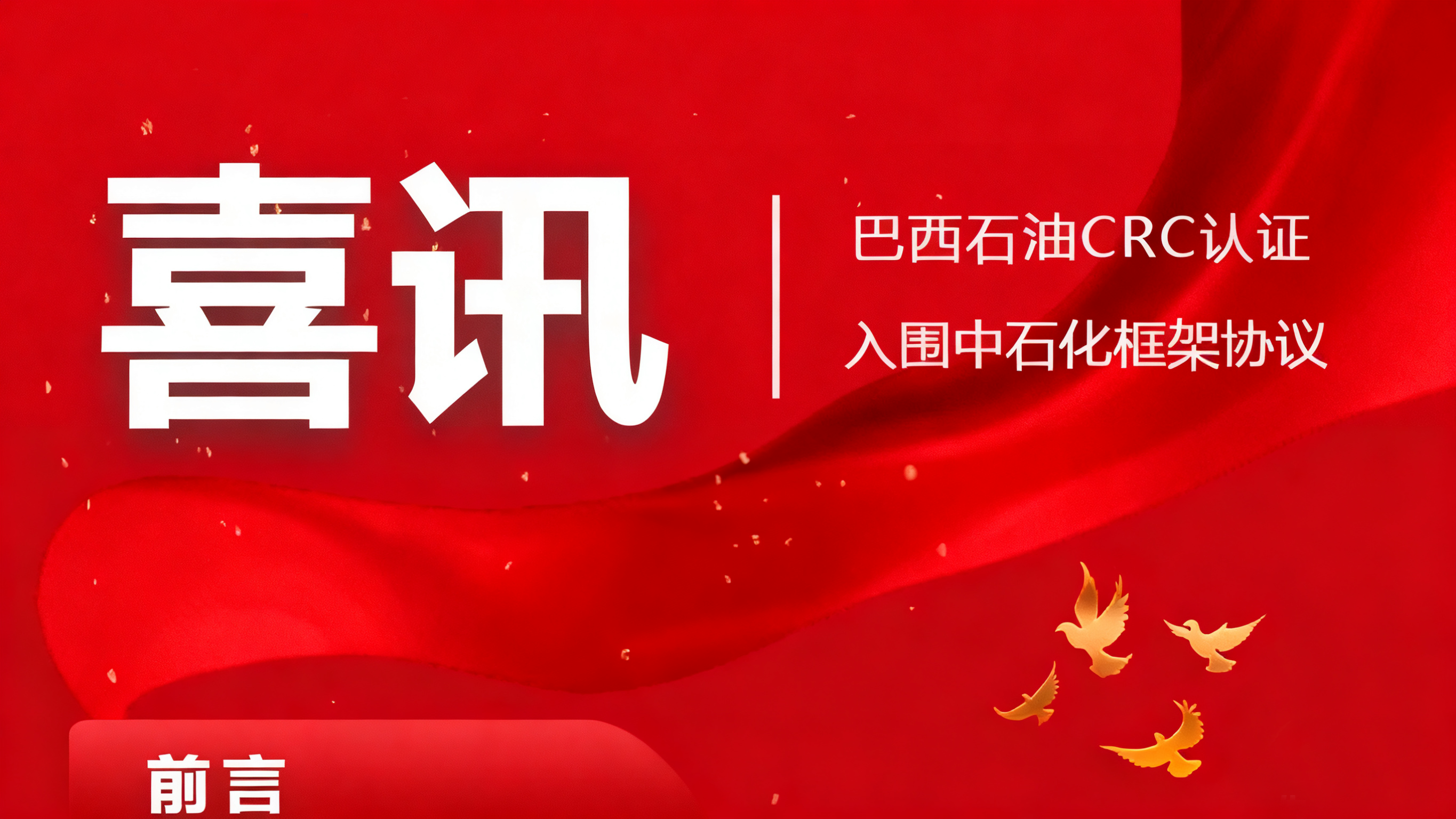 雙喜臨門:巴西CRC認證+中石化復合板框架協議